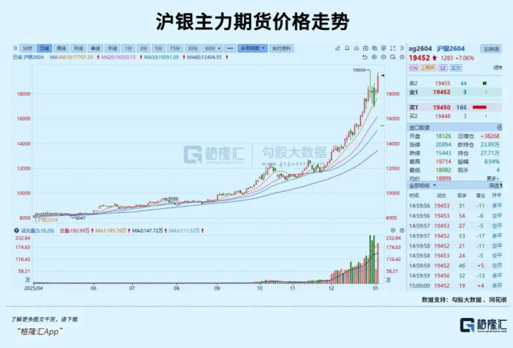 另一大关键催化因素来自银价。在经历大幅回撤后,银价重拾强势飙涨势头,1月6日沪银期货合约大涨超7%,单日总成交额高达8208.81亿元,远超其他期货品类。